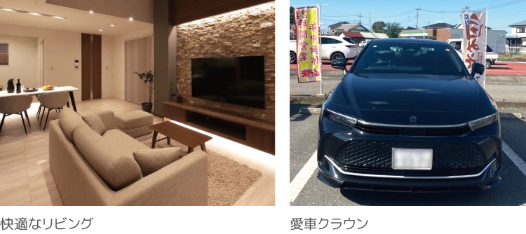- もちろん頑張っています。でも、自分の時間も大事にしたいです。28歳の時に4LDKの一軒家を建てました。自由設計にこだわり、開放感あるリビングと2階の上の隠れ基地のような部屋をつくりました。リビングでお酒を片手にDVDを見るのがリラックスタイムです。車も好きでお気に入りのクラウンで、家族でドライブもします。
