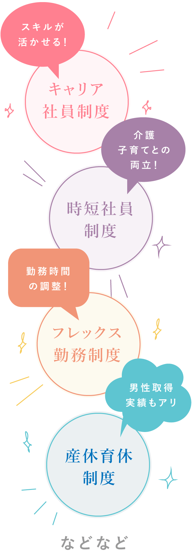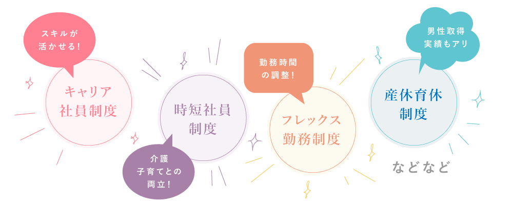 様々な生活環境の変化があっても、会社が応援!サポートする制度を作りました世の中の時流に合わせて、日々進化しています!